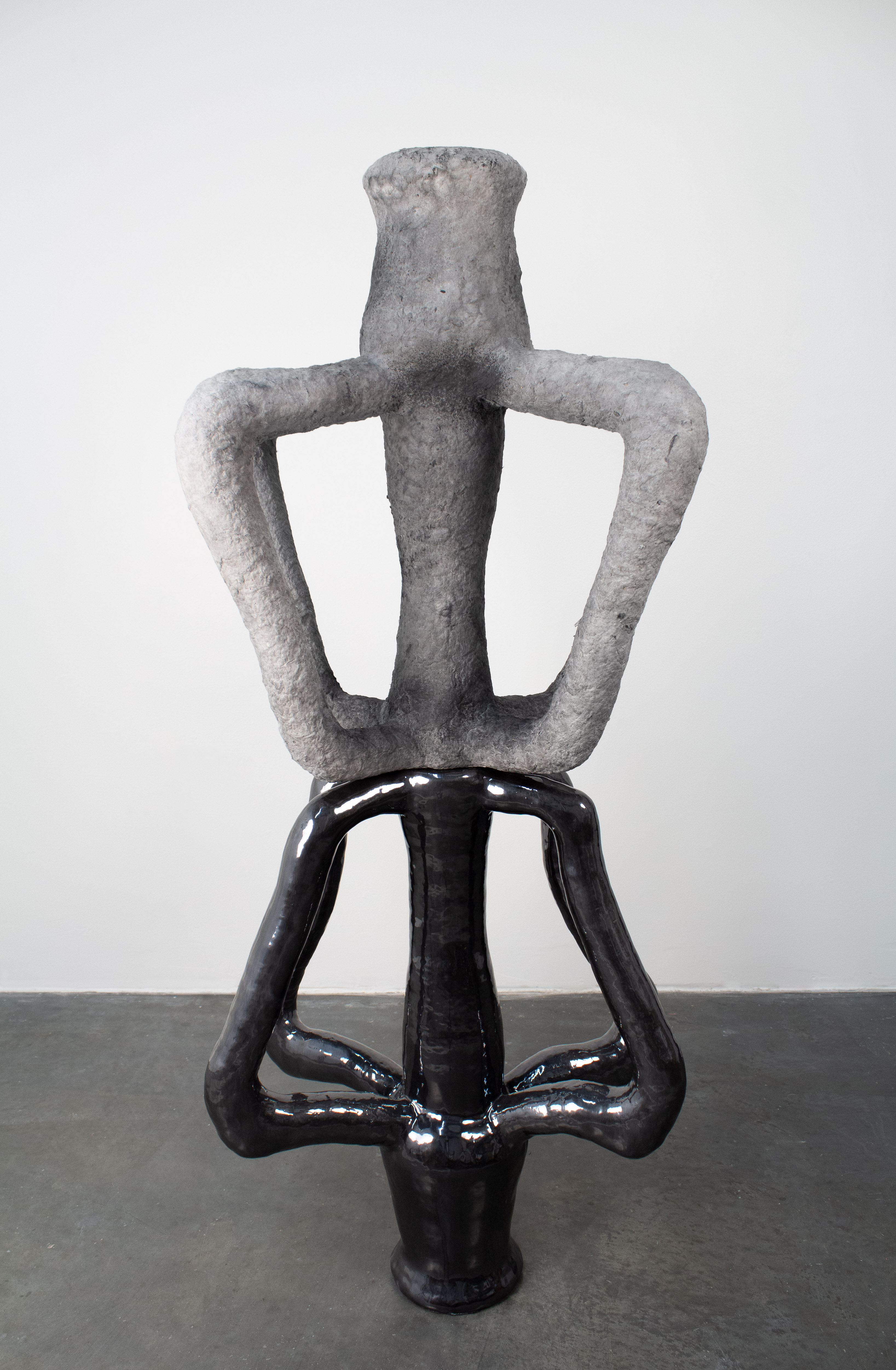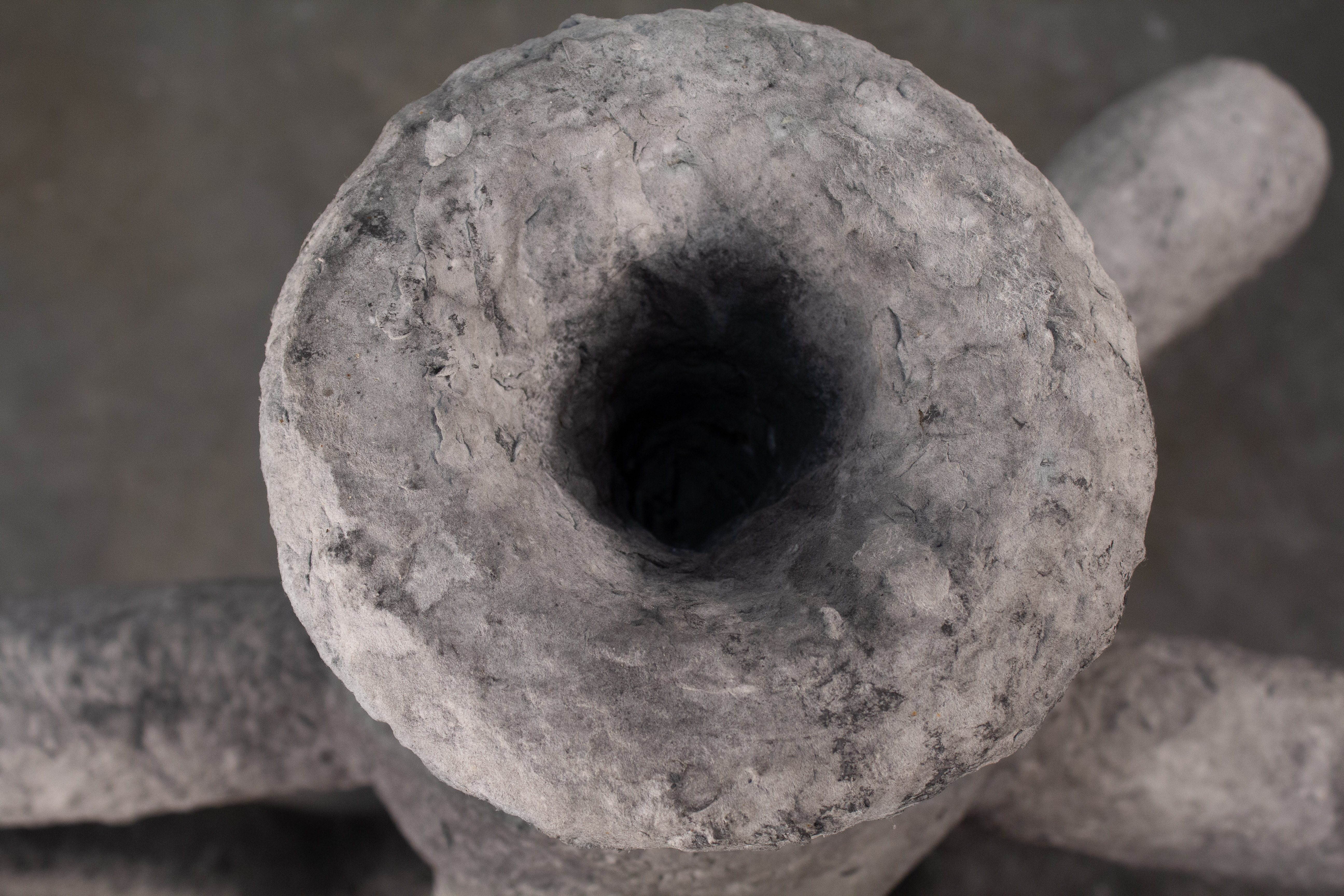ceramic, ground lime-ash subfloor, silver oar glaze, paper pulp, charcoal, india ink, graphite, foam